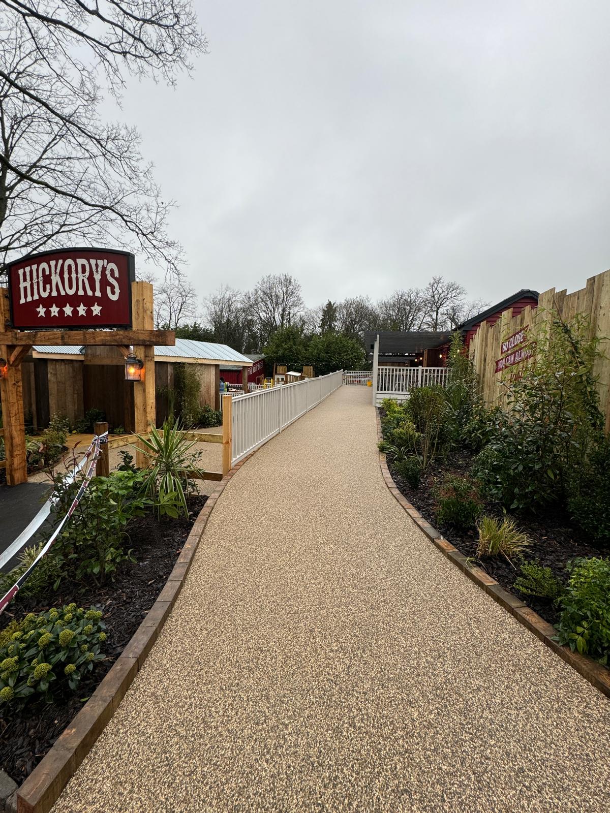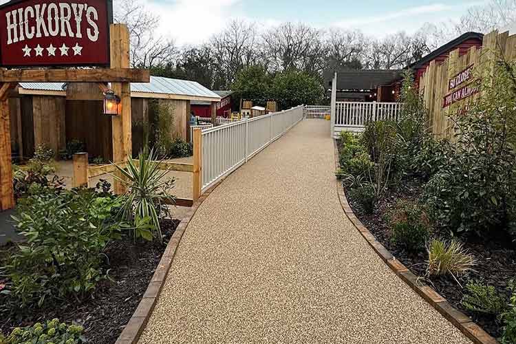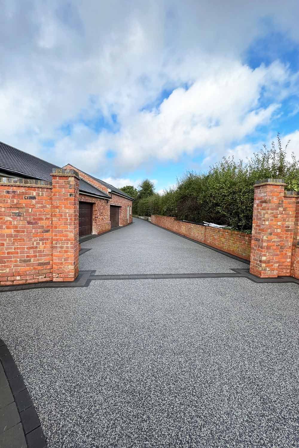 Made from a blend of resin and aggregates, it provides a smooth, non-slip, and permeable surface, reducing puddles and improving drainage.